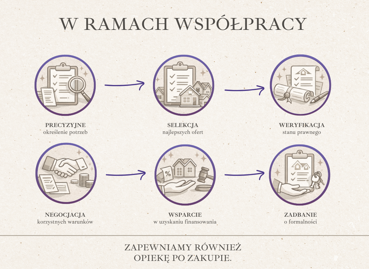 Pomagamy znaleźć i bezpiecznie kupić nieruchomość idealnie dopasowaną do Państwa oczekiwań.